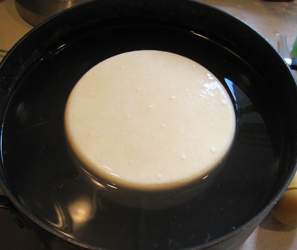 It was brining time. We already had a brine solution (essentially, non-chlorinated water saturated with cheese salt) so I boiled it to kill off any bacteria, then chilled it back down to fridge temperature before plopping the cheese into it.