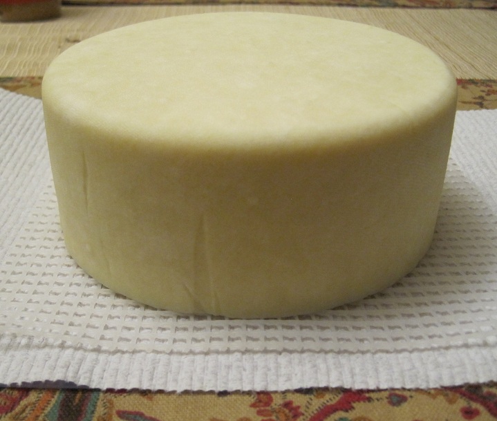 Then I pressed the cheese with an increasing series of weights, eventually doing 40 lbs. overnight:
