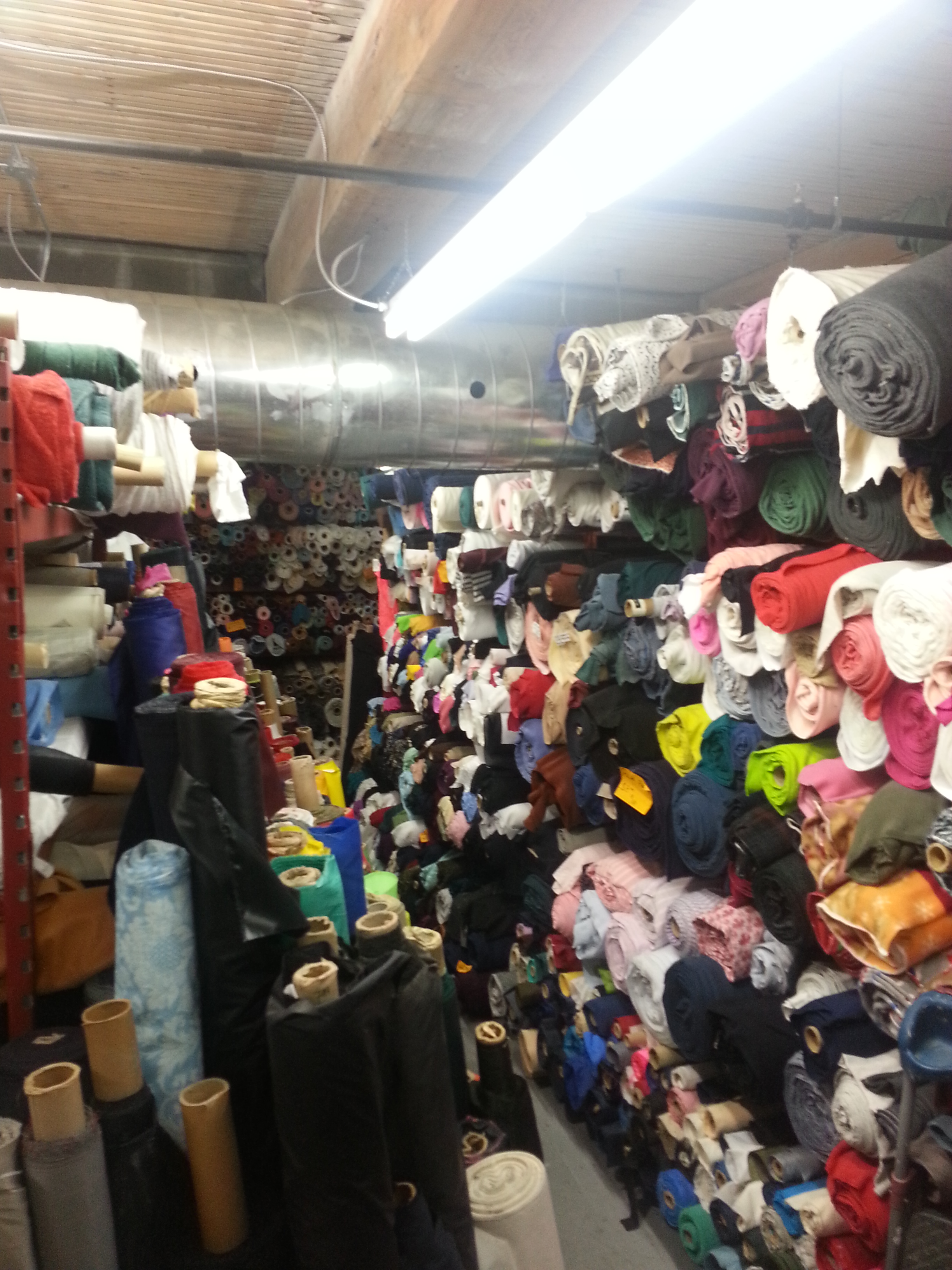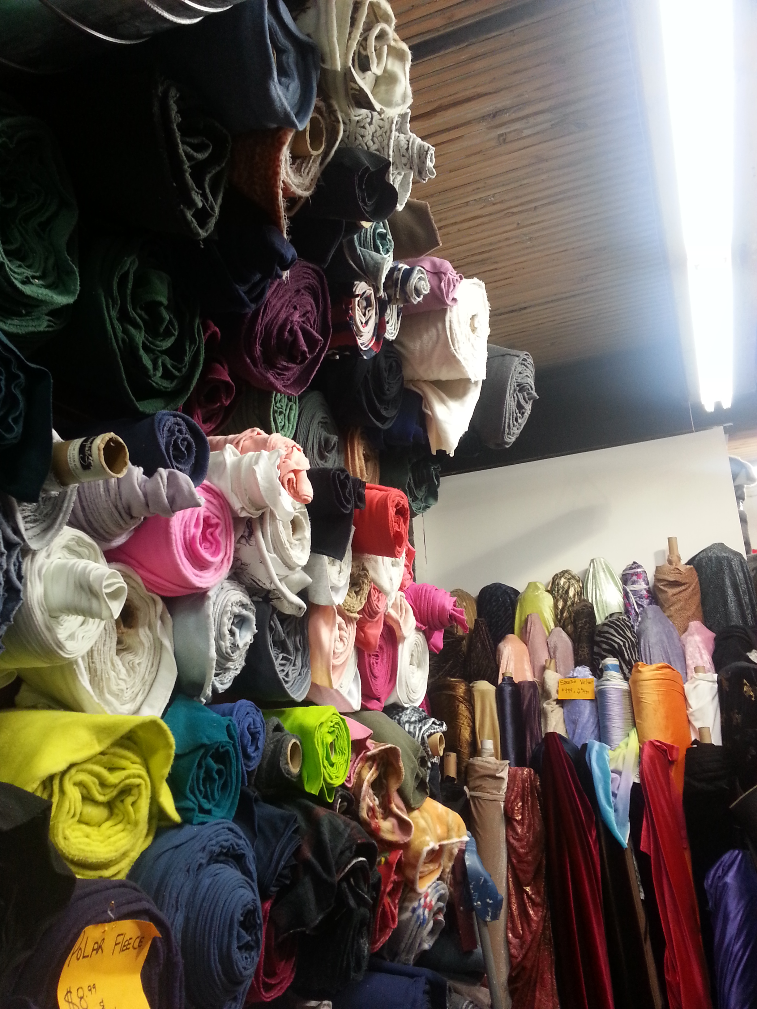 The place was so full of fabric that many of the aisles were just barely big enough to squeeze through. The fabric I wanted was near the ceiling so one of the helpful employees climbed up on top of the pile and grabbed it, knocking down a bunch more in the process. It was a magical place, not as cheap as sewphisticated (Around the same prices as Fabric Place Basement), but with somewhere around 10 times the amount and variety of sewphisticated. And all of it felt good quality fabric, not the stuff you find at JoAnn’s. The more and more I find places like this, the more I hate JoAnn’s and how it has put so many smaller fabric stores out of business. I wish more people sewed their own clothing so that there would be a larger demand for places like this.