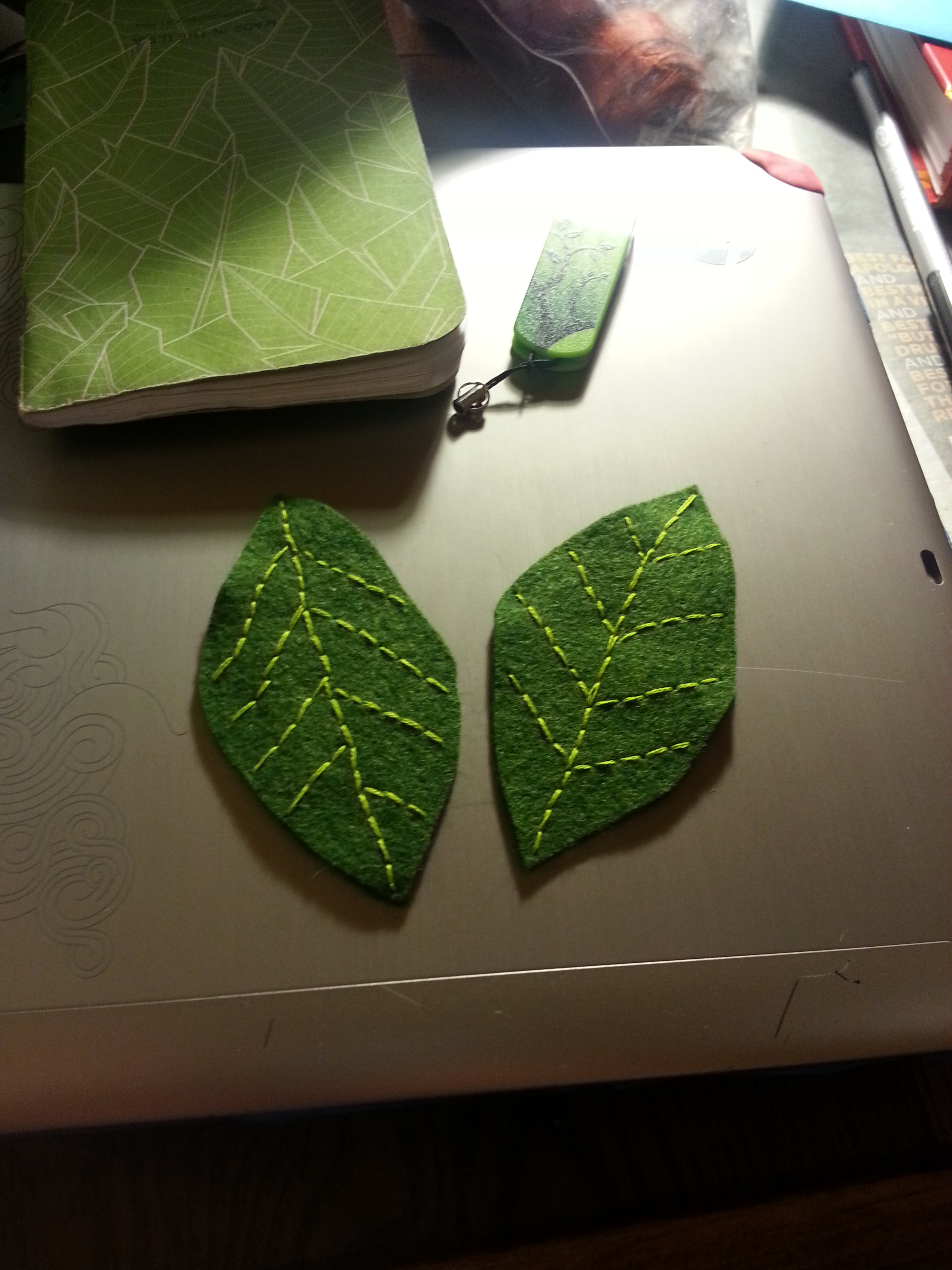 I made a little leaf enclosure for a USB stick I wanted to send to Peter, I think it came out rather well. I’m tempted to make a great many more little leaves like these and sew them to things. this picture really shows the pattern stuck in my head of late.