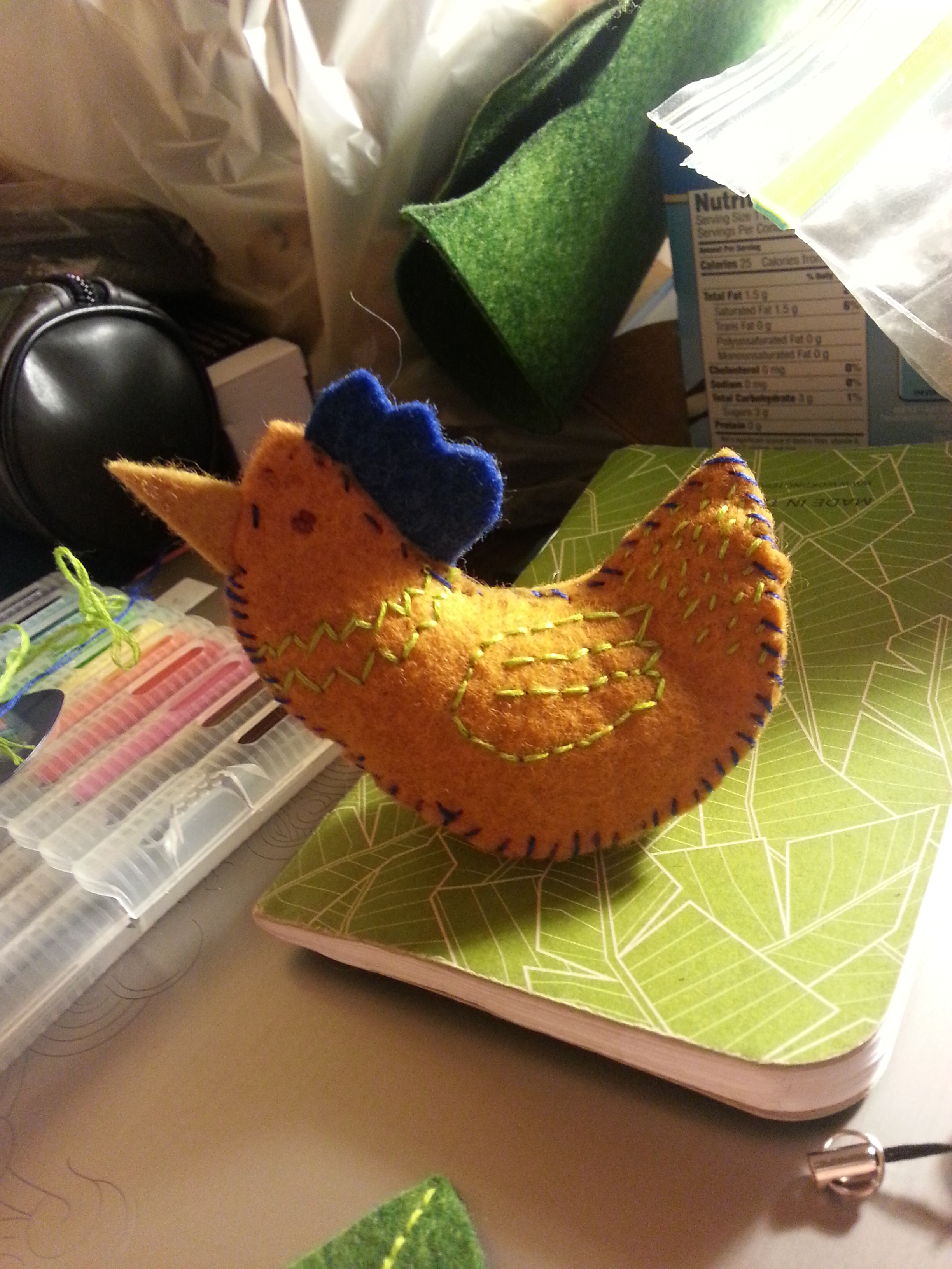 And I also made one of my little chickens and sent it to Peter’s aunt and uncle as thanks for letting us stay with them: