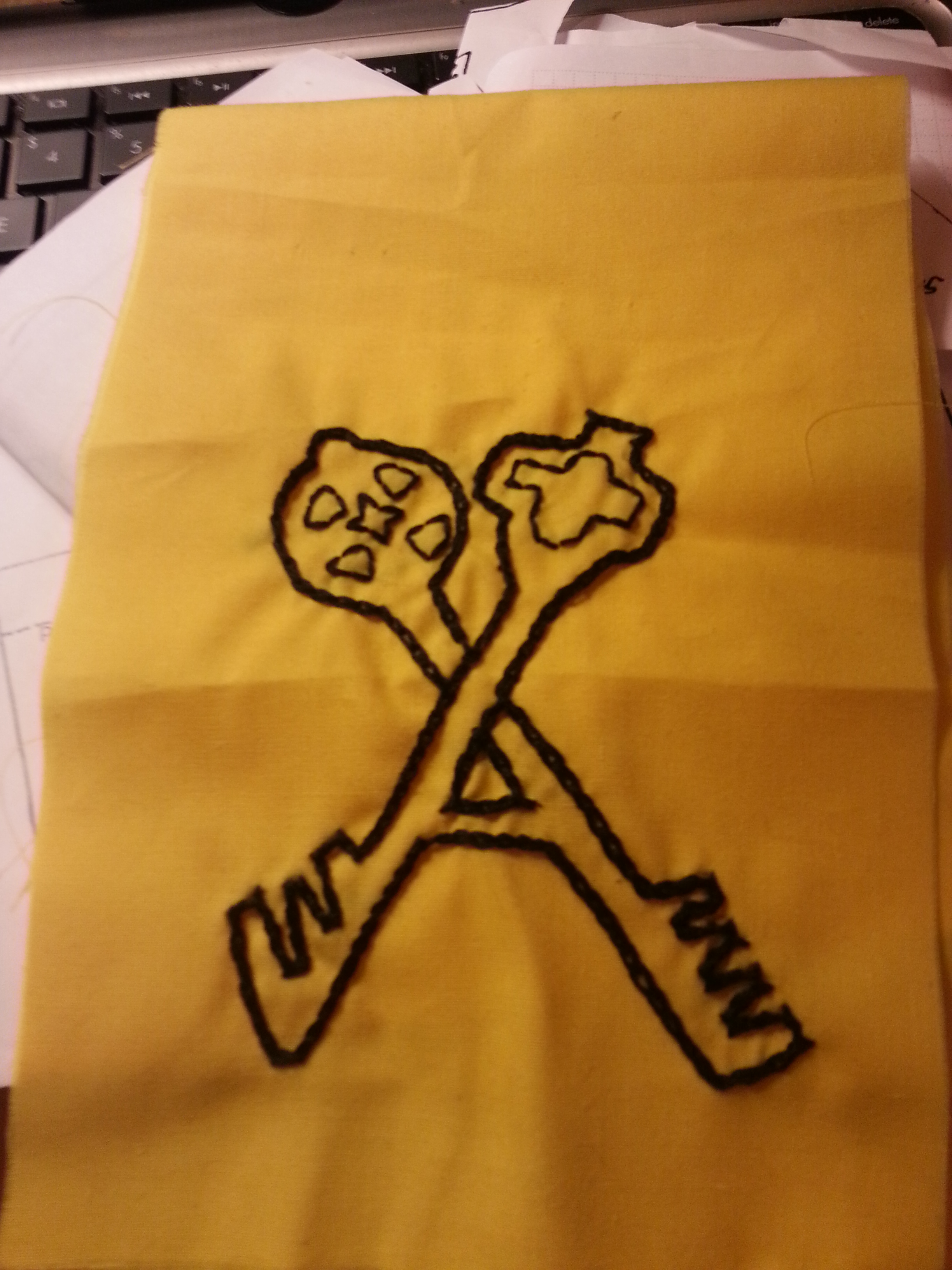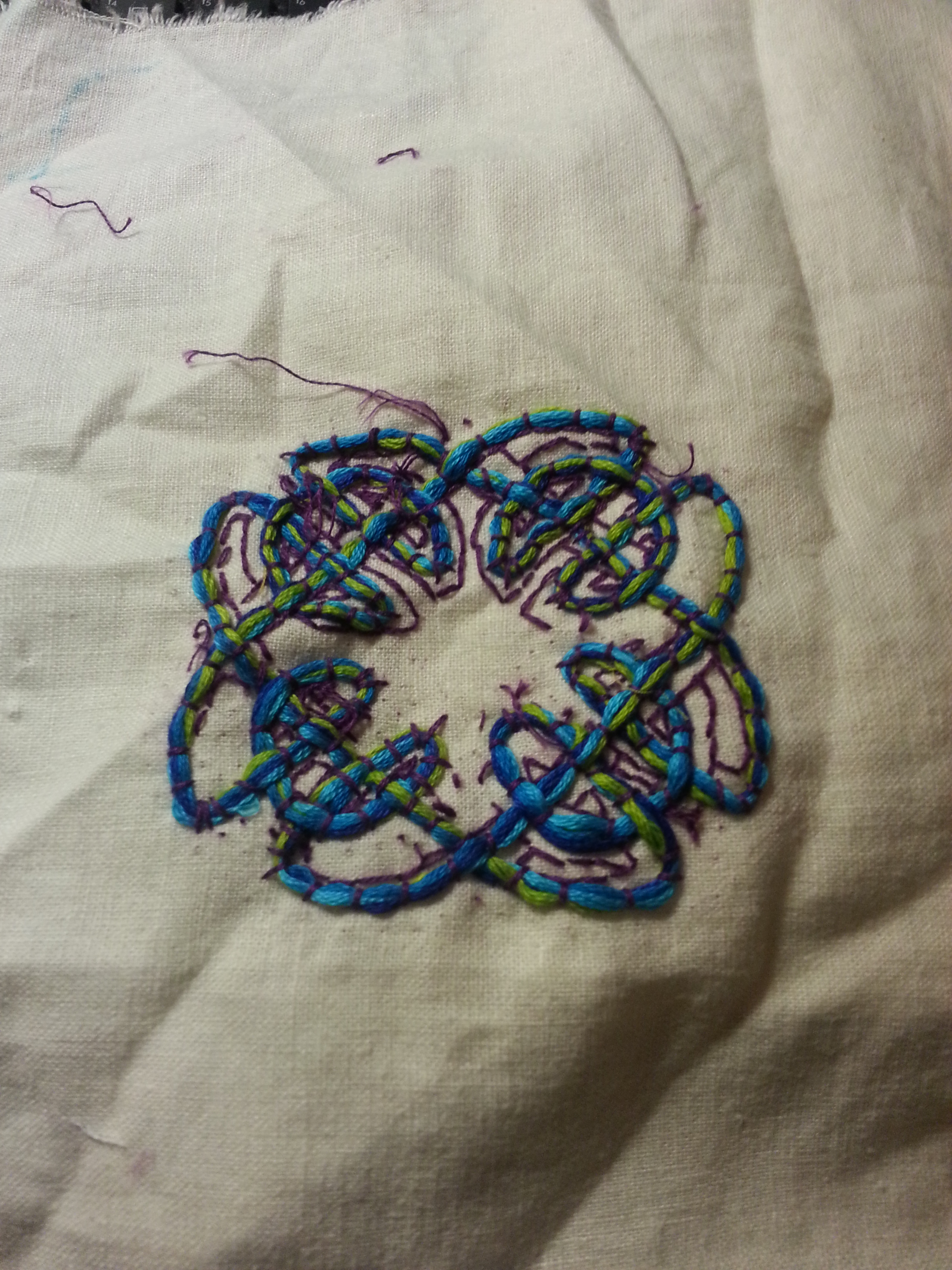 I also finished this Queen’s favor while I was waiting in the many lines that are a film festival. I also worked on a couching project:
