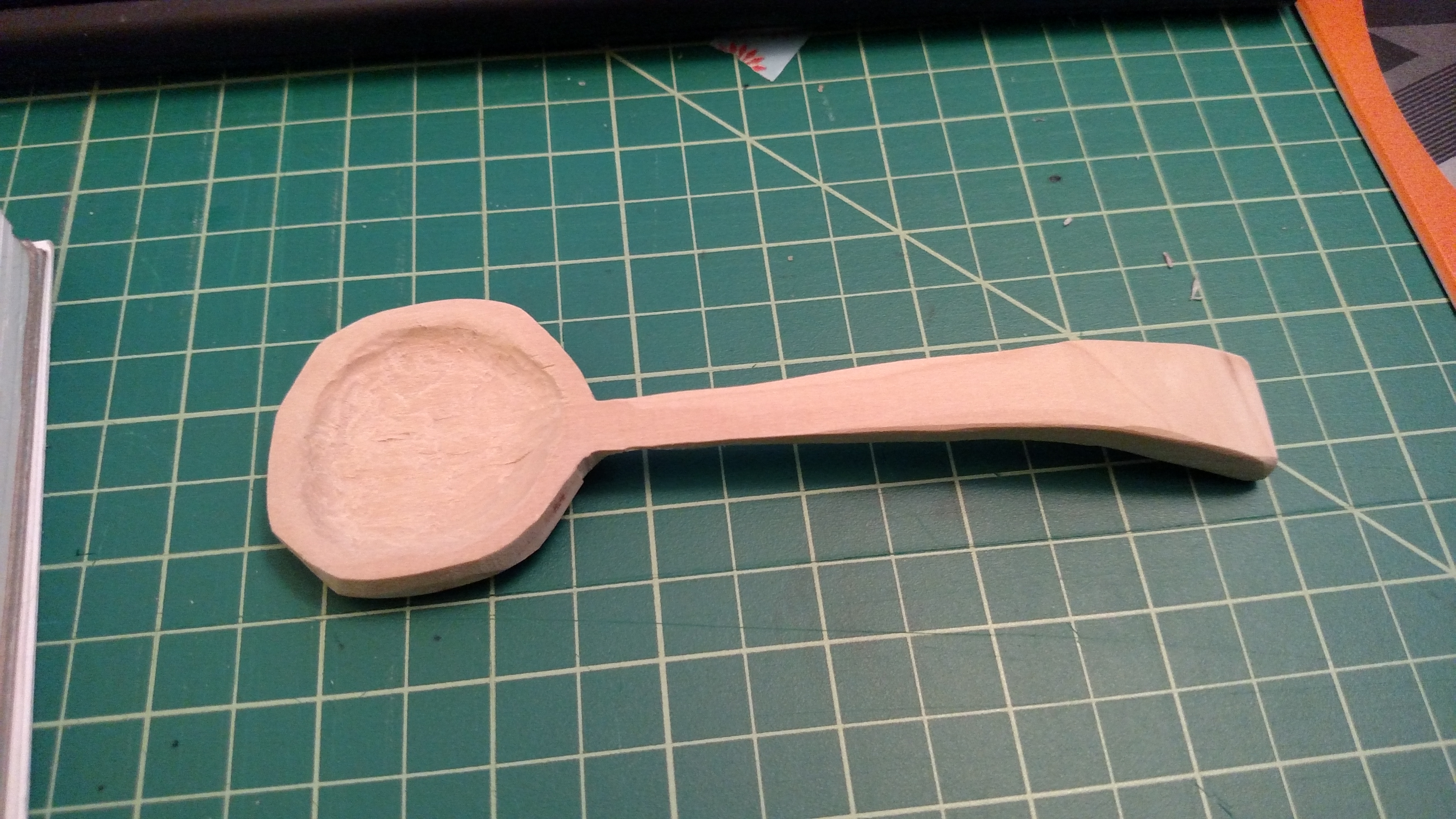 I decided to go with the general shape/size of the bone/horn spoons and the wood spoon’s overall shape, including trying to figure out the bend in the handle.