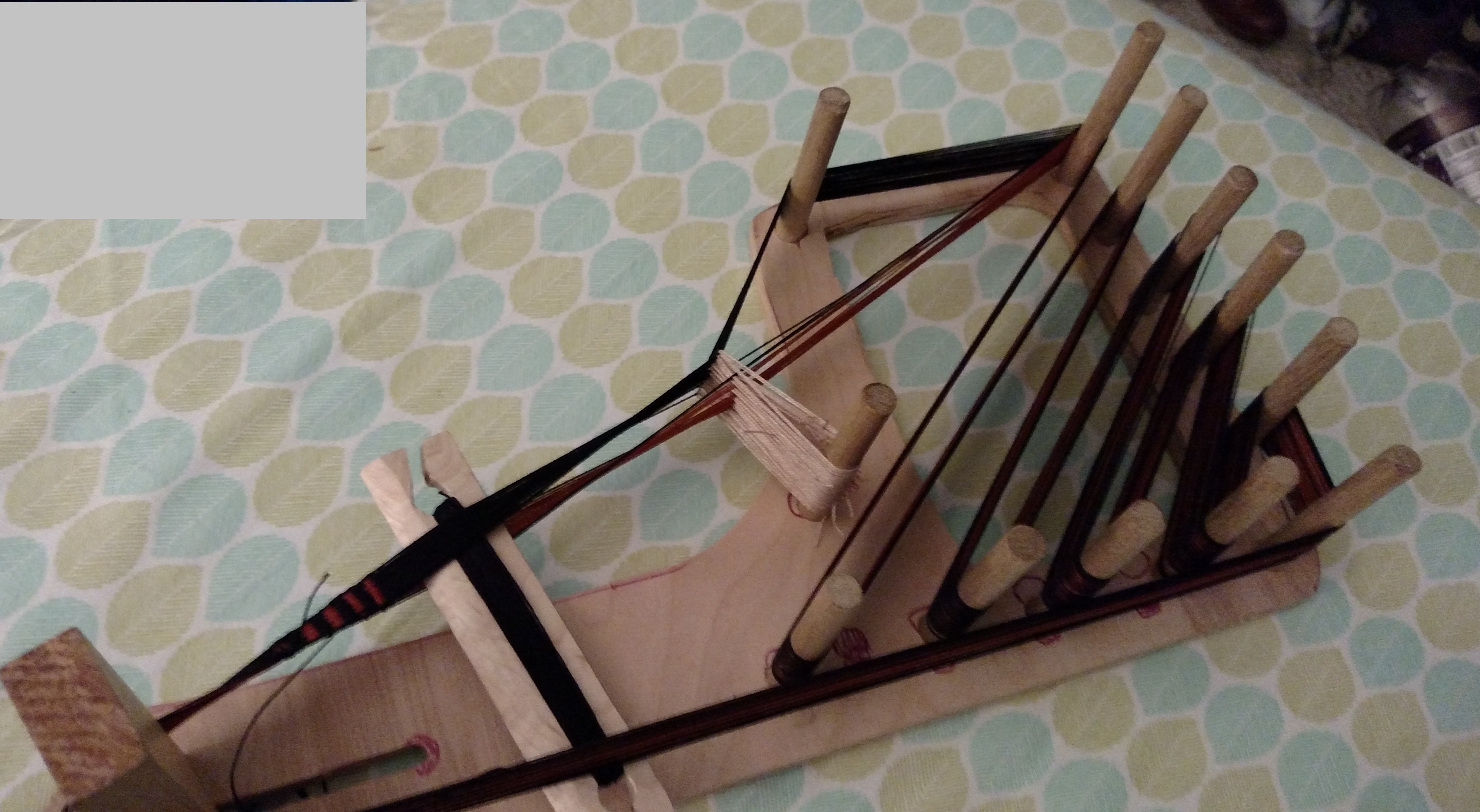The glue on my loom had finished curing, so I took the tension peg from my large loom and warped it up with some black and copper thread. I’m hoping to manage to figure out pick up work this time, but given my luck with it thus far, I’ll probably just have Halloween trim.